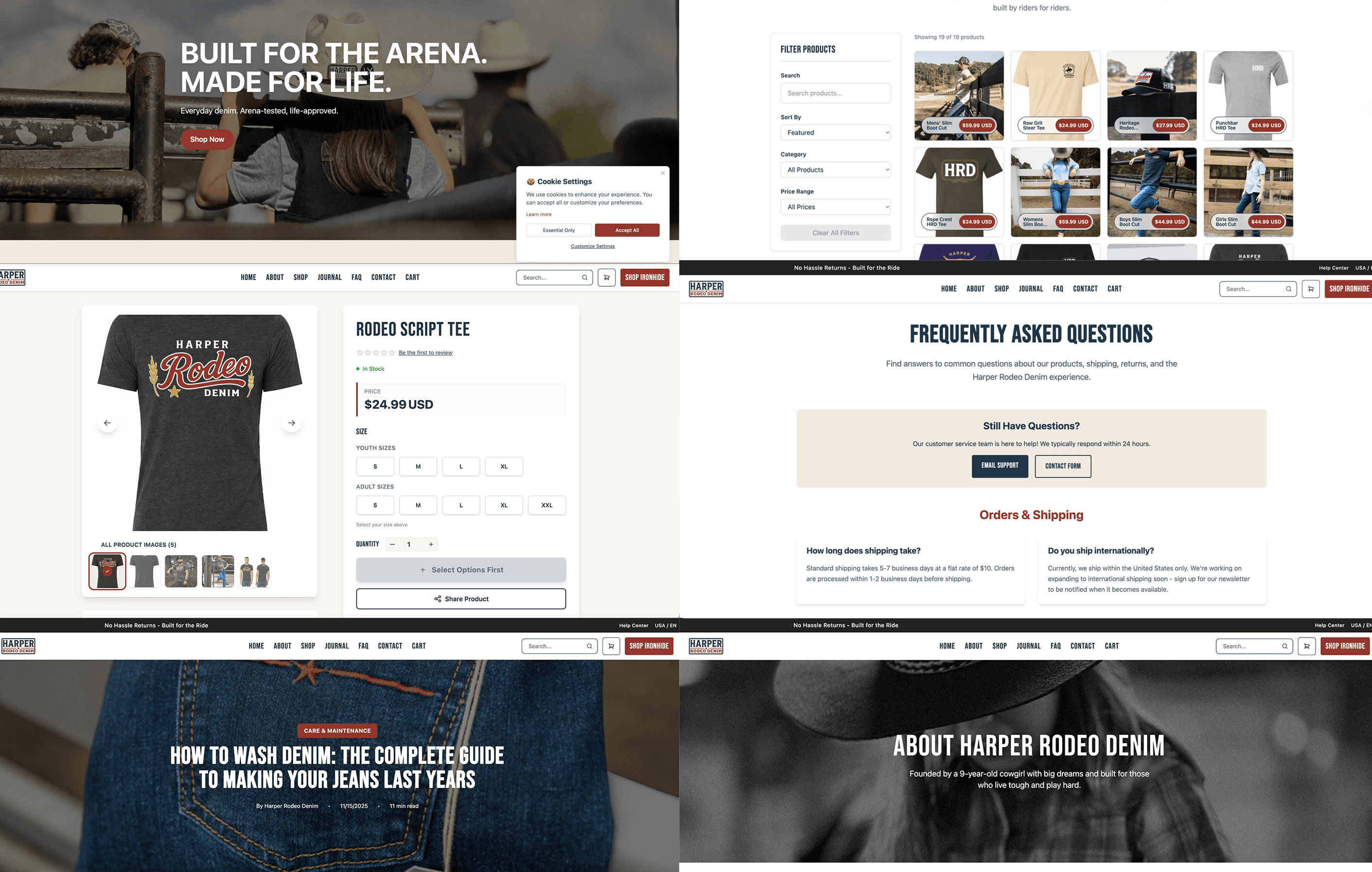 Harper Rodeo Denim didn't exist yet. There was a vision for a rodeo lifestyle brand serving kids and adults, but no identity, no visual system, no product packaging, no digital presence, and no path to market.